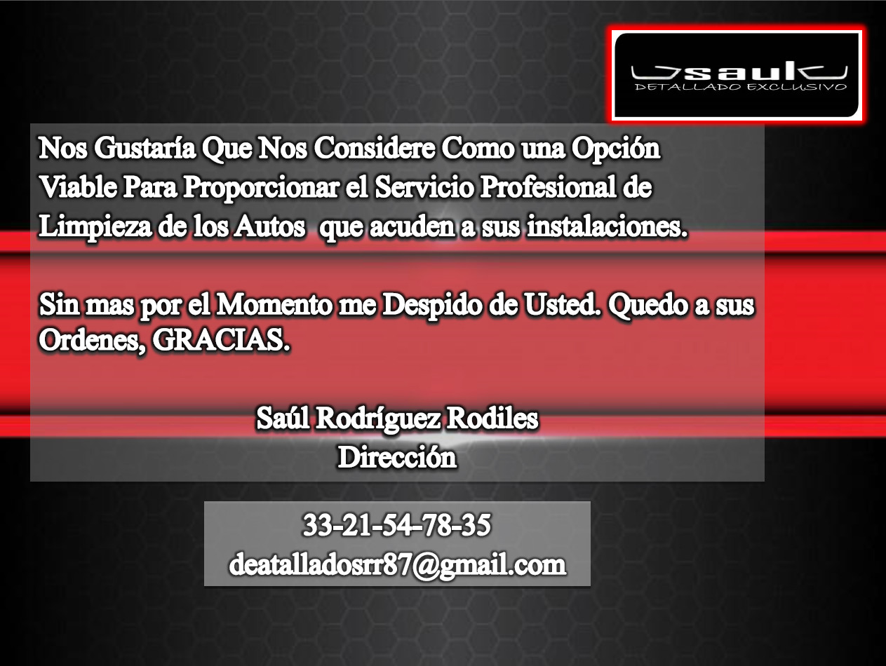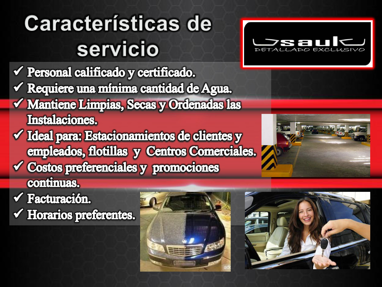 Somos una empresa Joven dedicada a proporcionar servicios PROFESIONALES de Estetica Automotriz en estacionamientos y Oficinas, Que nace con un firme proposito de sustentabilidad en pro del medio Ambiente, por lo cual ofrecemos un NUEVO Y REVOLUCIONARIO Concepto de Servicio, cubriendo asi la necesidad de Limpieza Automotriz, ahorrando tiempos y distancias, Cumpliendo ante todo con nuestro compromiso 100% Ecologico.